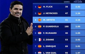 阿森纳近期在欧冠赛场上表现出色,达成了七...